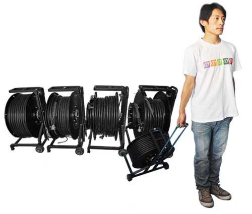 方便实用的综合电缆轴,带轱辘,松紧刹车、快慢档位,现场实用,收放自如。