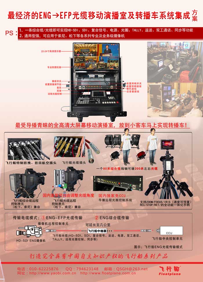 方便实用的飞行船摄像机收发器于:摄像机远程供电、远程光圈控制、摄像师与主持人TALLY提示、双工内部通话、高清摄像机HD-SDI视频输出、导播PGM信号返送(兼容数字高清HD-SDI、SD-SDI,模拟视频信号)即使游动机位也运用自如。